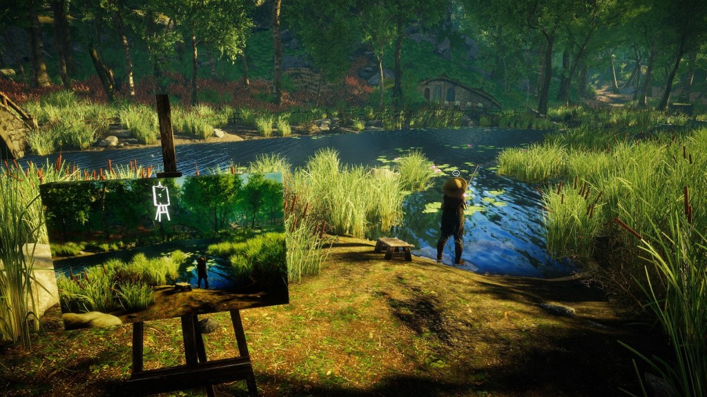 Tindakan melukis itu sendiri tidak disimulasikan dengan cara apa play on words. Anda cukup menggunakan mouse untuk menarik bingkai melintasi layar. Apa play on words di dalam bingkai itu kemudian ditangkap, dirender dengan gaya pelukis, dan direproduksi di atas kanvas. Intinya, Anda mengambil tangkapan layar. Karena itu, ada banyak kesenangan yang bisa didapat dalam membingkai subjek Anda, karena siapa play on words yang telah menggali kegembiraan mode foto gim dapat membuktikannya. Saya diminta oleh seorang warga desa yang sombong untuk melukis potretnya, dan sepenuhnya menangkap semua kemuliaan dan kepahlawanan yang digambarkannya sendiri. Dia sedang duduk di sebuah kedai minuman pada saat itu, di sebelah perapian besar yang cerobongnya membentang ke langit-langit berlantai dua, jadi aku menjebaknya ketika sosok mungil ini dikerdilkan oleh tungku batu yang mengesankan. Dia bersyukur, tentu saja – saya yakin logika permainan hanya memeriksa apakah subjek yang diperlukan ada dalam bingkai – tetapi saya merasa sangat memuaskan.