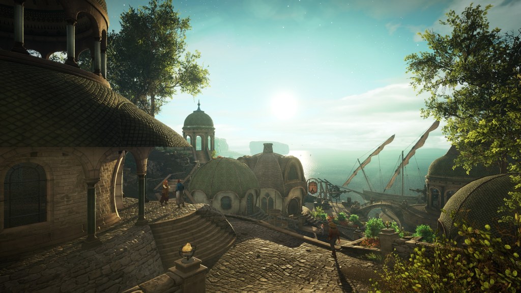 Memang, Eastshade adalah permainan lambat yang bergerak dengan kecepatan yang tepat. Dari sinar matahari keemasan yang hangat yang menyaring melalui kanopi Pohon Hebat yang lebat hingga kolam-kolam air di pertanian teras yang menghiasi kota yang berkilauan di bawah cahaya pagi, Anda akan selalu mendapati diri Anda berhenti untuk mengatur napas. Bahkan setelah menapaki jalan berbatu yang sama selusin kali atau lebih, berjam-jam kemudian saya masih menemukan diri saya mengagumi pemandangan, pemandangan luas dan detail menit sama.